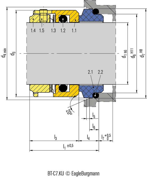 Ausführung und Beschreibung wir BT-C7, jedoch mit aufgeschrumpftem Gleitring.