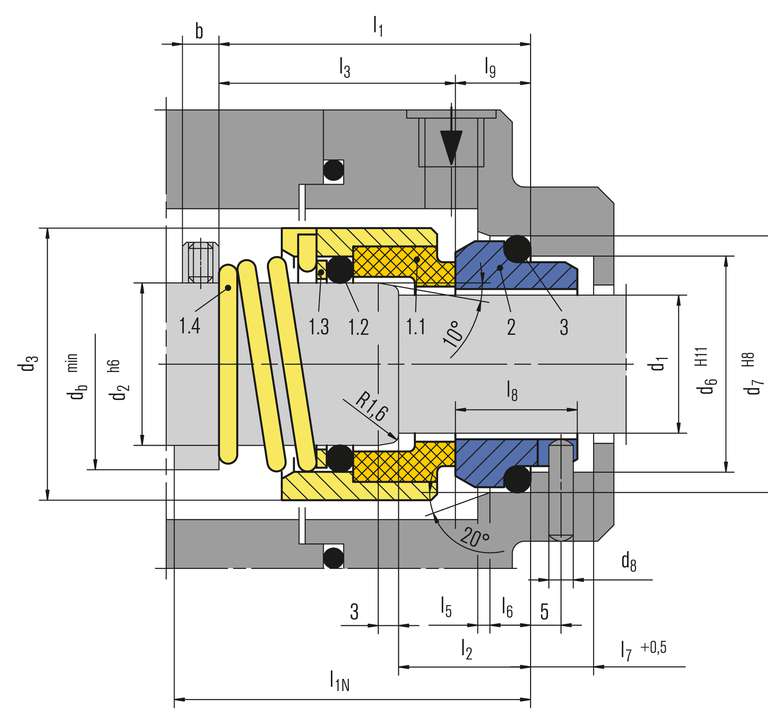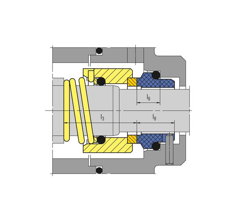 Maße, Positionen und Benennungen wie H12N, jedoch mit geschrumpften Gleitring (Q12) und Gegenring G16.