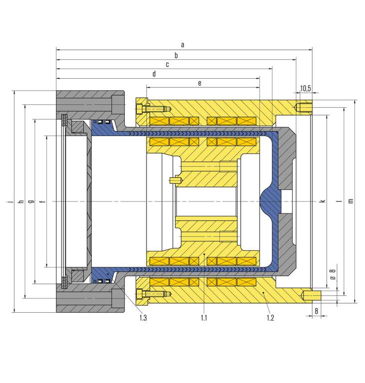 Die Kraftübertragung erfolgt mittels Magneten berührungslos vom Antrieb zur im Produkt laufenden Welle. Zwischen den Rotoren befindet sich der Spalttopf, das dichtende Element. Er ist zum Produktraum statisch abgedichtet.