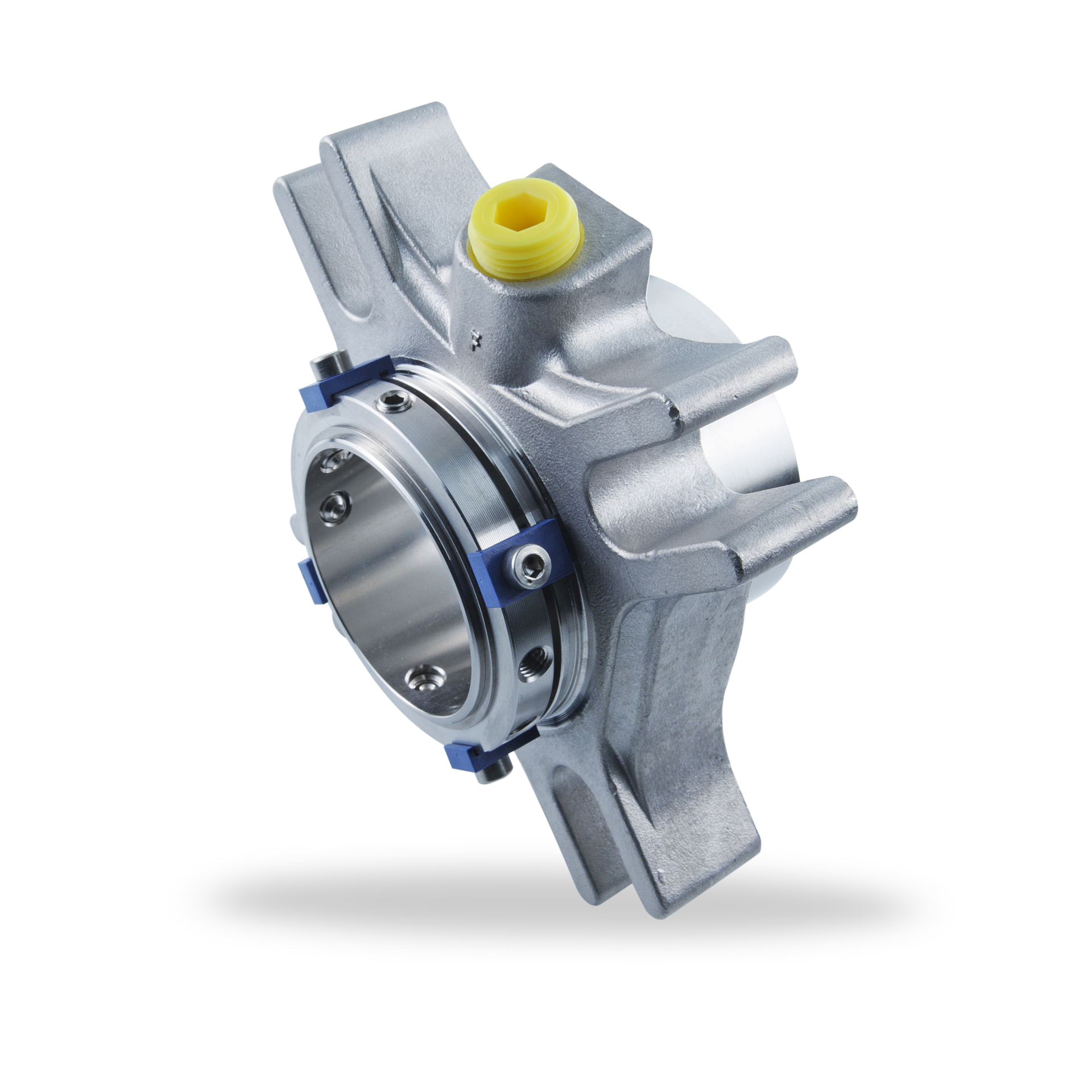 Im Vergleich zu üblichen Doppelgleitringdichtungen verfügen die für den Nonflow-Betriebsmodus ausgelegten Dichtungssysteme über zusätzliche Bohrungen und Spiralschlitze im Gehäuseinneren. Dies erlaubt der Sperrflüssigkeit, innerhalb der Dichtung zwischen Produkt- und Atmosphärenseite zu zirkulieren. Die Reibungswärme wird zur Produktseite geleitet, und das gekühlte Dichtungswasser fließt von der Produktseite zur Atmosphärenseite zurück, angetrieben von der Rotationsbewegung der Welle. Die Dichtung funktioniert wie ein Wärmetauscher. Der üblicherweise obligatorische Thermosiphonbehälter für doppeltwirkende Gleitringdichtungen wird nicht benötigt.