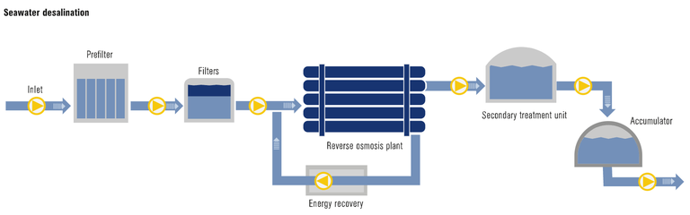 These processes require the use of many different pumps. They must move a great quantity of water and be able to handle different requirements. The sometimes high salt content of seawater or of the separated salt (brine), the chemicals in the brine, and high pressures of up to 60 bar place great demands on the pumps and their seals. At the same time, the sealing components used for drinking water production must comply with high hygienic standards and legal requirements. The technically oriented design of the seals and their materials are therefore critical for reliable, efficient, and safe pump and system operation.